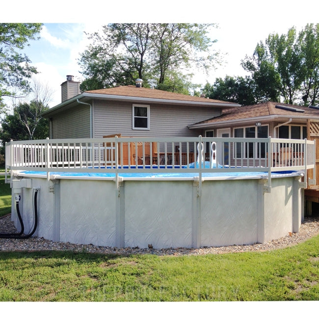 Premium Resin Pool Fence System with 24” height for safety and protection for your above or semi inground pool. Manufactured using maintenance free resins and stai...