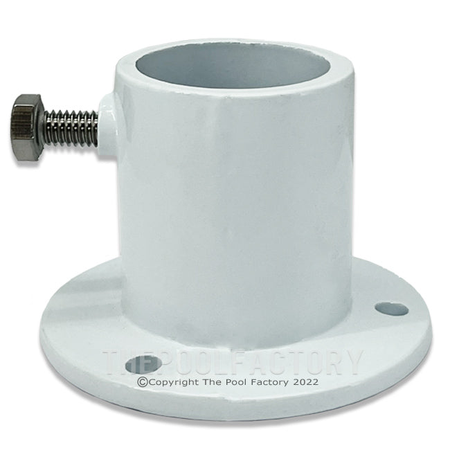 Aluminum ladder flange replaces the standard plastic ladder flange for above ground in-pool ladders. Each aluminum deck ladder flange is sold individually.