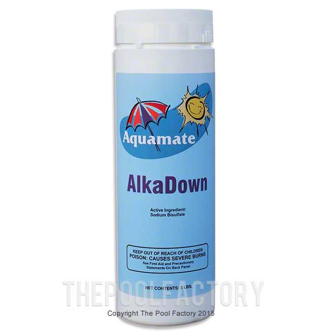 Alkalinity Minus helps reduce the amount of Total Alkalinity and pH in a swimming pool or spa. High total alkalinity can cause pH to resist adjustment, cloudy water and scale may develop.