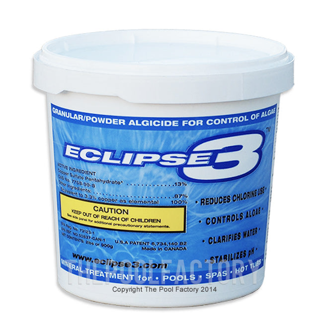 Eclipse3 is an all-natural mineral treatment for pools, spas and hot tubs. Eclipse3 has been proven to perform extremely well in three main areas; it eliminates algae growth and reduces your use of chlorine, clarifies the water while maintaining a proper pH level, and can reduce your electrical operating costs by as much as 66%. Eclipse3 helps pool and spa owners maintain a healthier, cleaner and more natural way of enjoying their investment and leisure time. (Used by Six Flags Great Adventure)