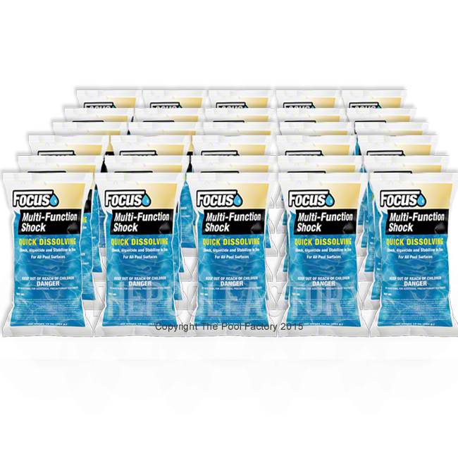 Focus Multi Purpose Shock is neccessary at the beginning of the season, during hot weather, and following heavy rain or windstorms. Focus Multi Purpose Shock is a highly effective sanitizer that kills harmful bacteria, aids in algae control and helps keep the pool clean and clear. It . Focus Multi Purpose Shock is a powerful sanitizer that will provide you with the results you need to create a healthy swimming environment.