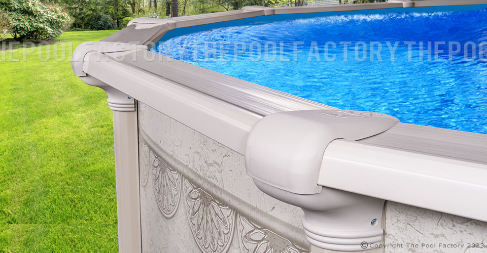 The Hampton features 9" wide resin top ledges and unique interlocking resin caps to enhance its strength and beauty. Plus the durable 6" uprights and resin foot collars combine superior design elements to ensure a stronger pool with excellent stability.