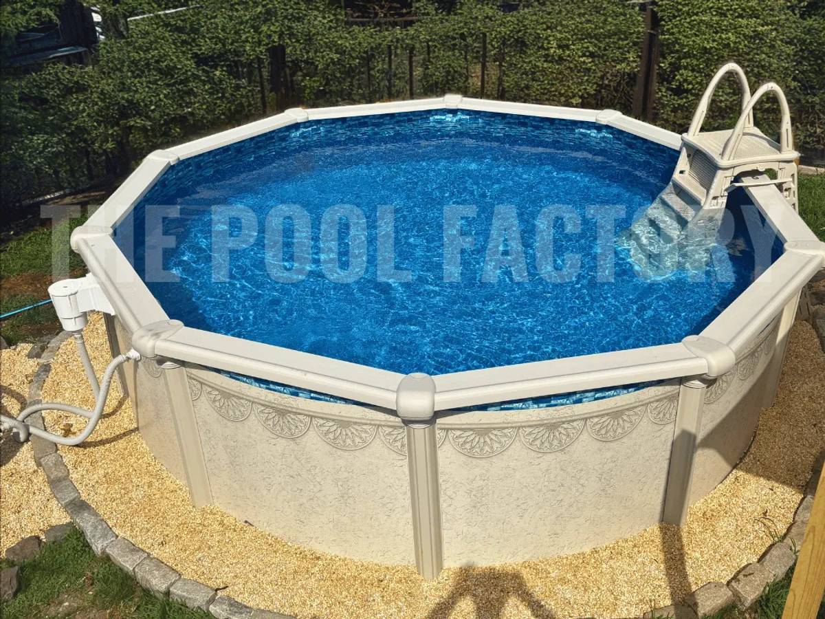 The Hampton features 9" wide resin top ledges and unique interlocking resin caps to enhance its strength and beauty. Plus the durable 6" uprights and resin foot collars combine superior design elements to ensure a stronger pool with excellent stability.