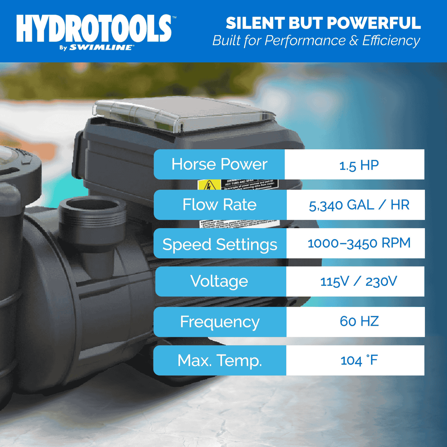 The Hydrotools 1.5 HP Variable Speed (Vertical Discharge) Above Ground Pool Pump delivers powerful, energy-efficient filtration with adjustable speeds up to 3450 RPM. Featuring a high-f...