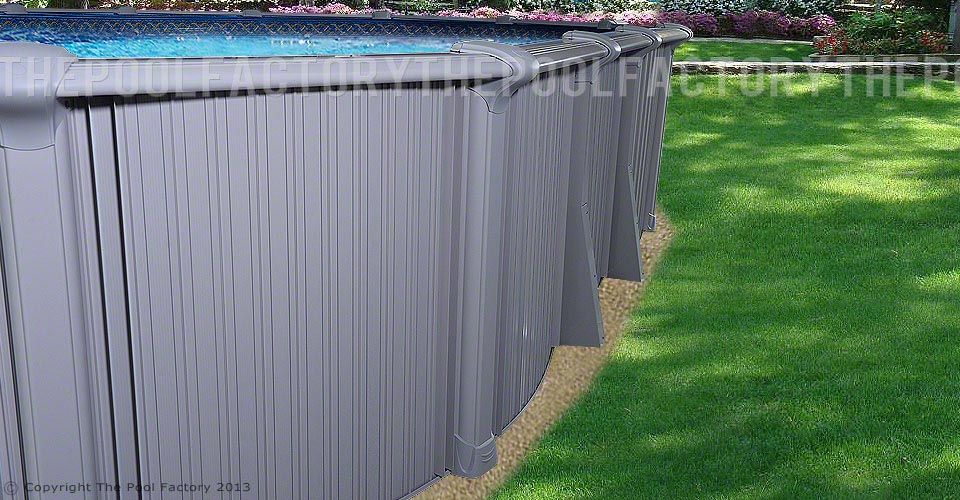 The Intrepid oval features a Yardmore space saving system that incorporates superior strength and a stylish overall appearance. This oval system is supported with heavy steel beams and straps that run underneath the pool eliminating the need for poles or braces protruding at each side of the pool. This sleek oval design allows more pool size while occupying less space, giving a clean and attractive appearance.
