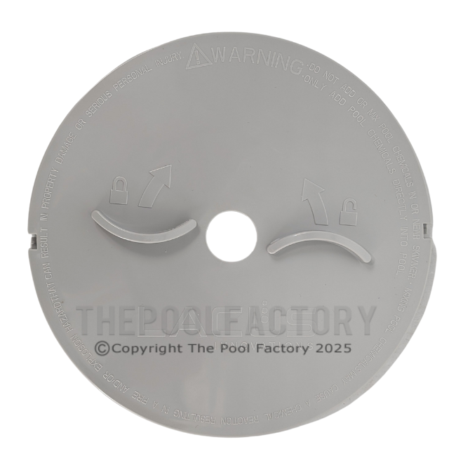 The Lacus Thru-Wall Skimmer Cover Plate measures 7-1/2" in diameter. This is a factory original Lacus replacement part.