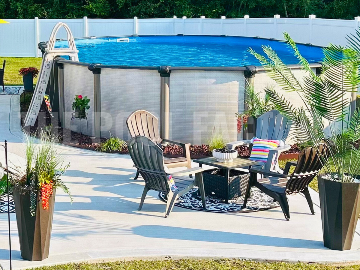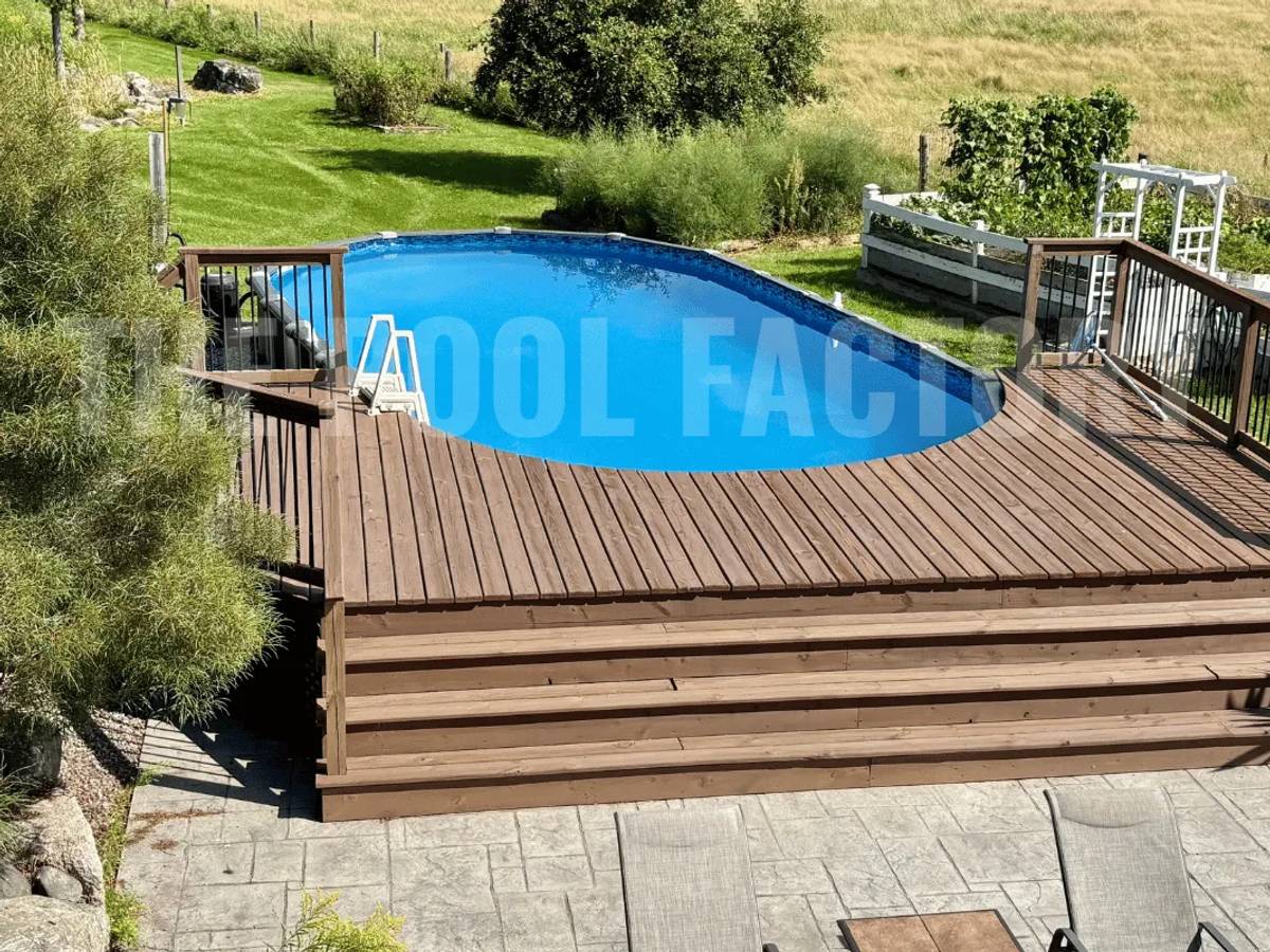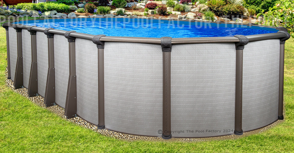 The Melenia oval features the Yardmore space saving support system that incorporates superior strength and an attractive overall appearance. This oval system is supported with heavy steel beams and straps that run underneath the pool, eliminating the need for poles or large braces protruding at each side of the pool. This sleek oval design allows more pool size while occupying less space, giving a clean and uncluttered presence.