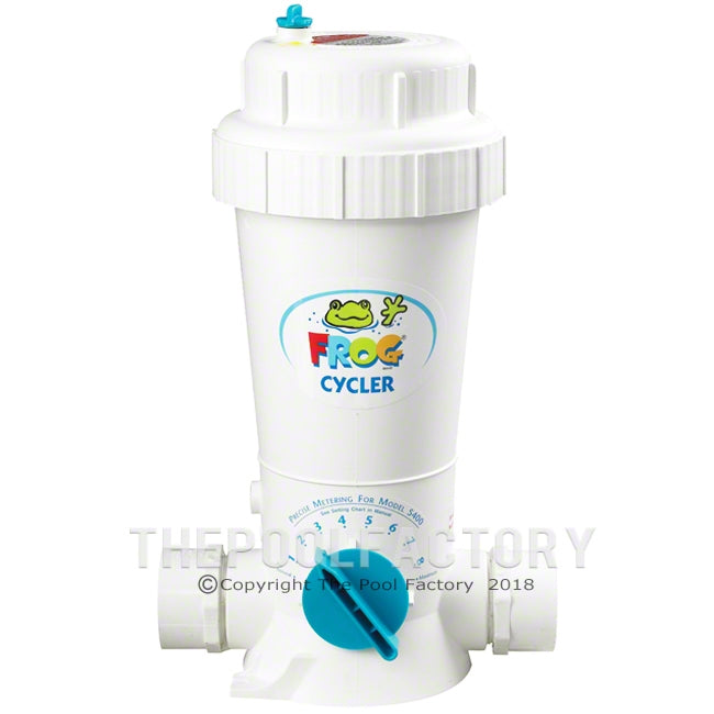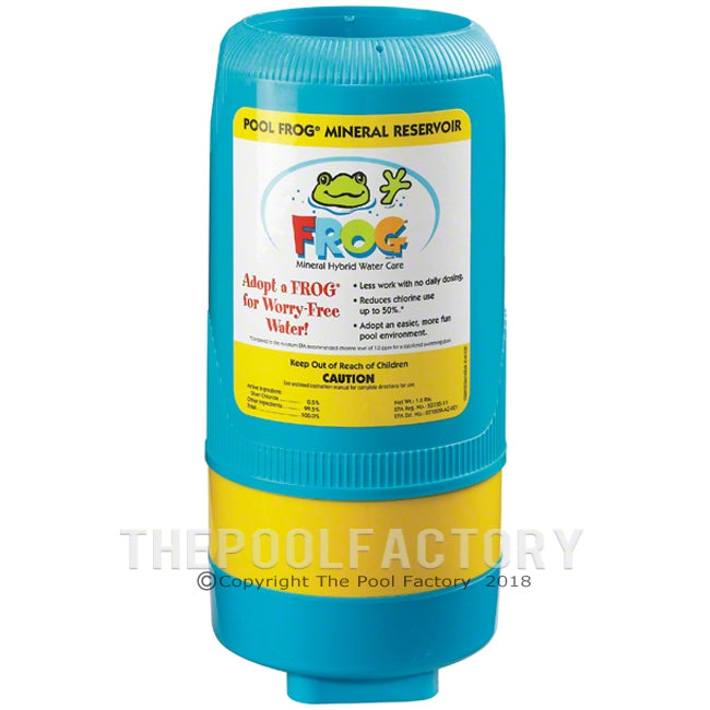 The Pool Frog System Package 5400 Series, uses a Mineral Reservoir and a pre-filled Chlorine Pac, for complete pool care.