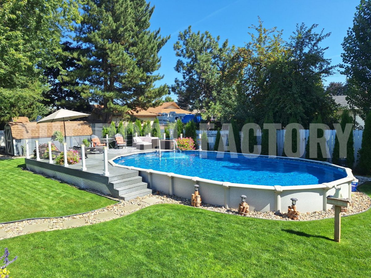 The Signature RTL oval features a Yardmore space saving support system that incorporates superior strength and an attractive overall appearance. This oval system is supported with heavy steel beams and straps that run underneath the pool, eliminating the need for poles or braces protruding at each side of the pool. This sleek oval design allows more pool size while occupying less space, giving a clean and uncluttered presence.