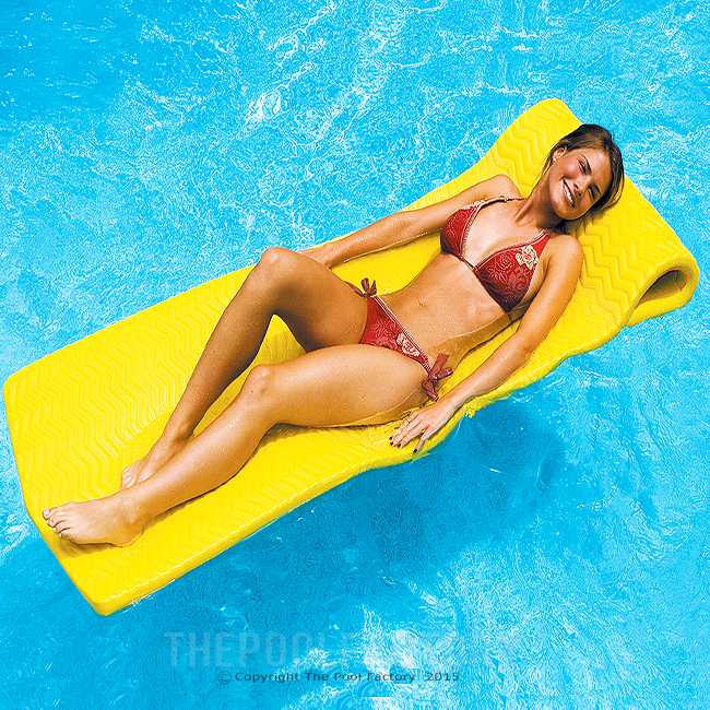 Swimline 1.5" thick Yellow SofSkin Floating Mattress is a comfortable, luxurious way to enjoy the pool. This soft, floating foam lounge never needs inflation! Simply unroll the mattress...